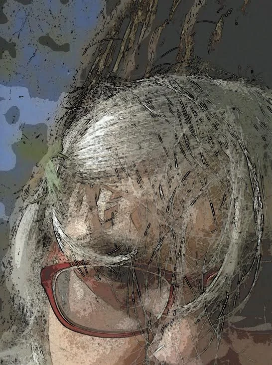 [Image description: Approximately two thirds of Barbara Ruth’s face appears. She has grey hair, which is in her face, over her red glasses. Her eyes are brown and a tree trunk appears behind her. Her mouth and left eye are not visible.] Photo Credit: Barbara Ruth.