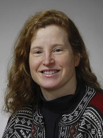 [Image Description: A red-haired white woman smiles. She is wearing a red, black, and white sweater.]